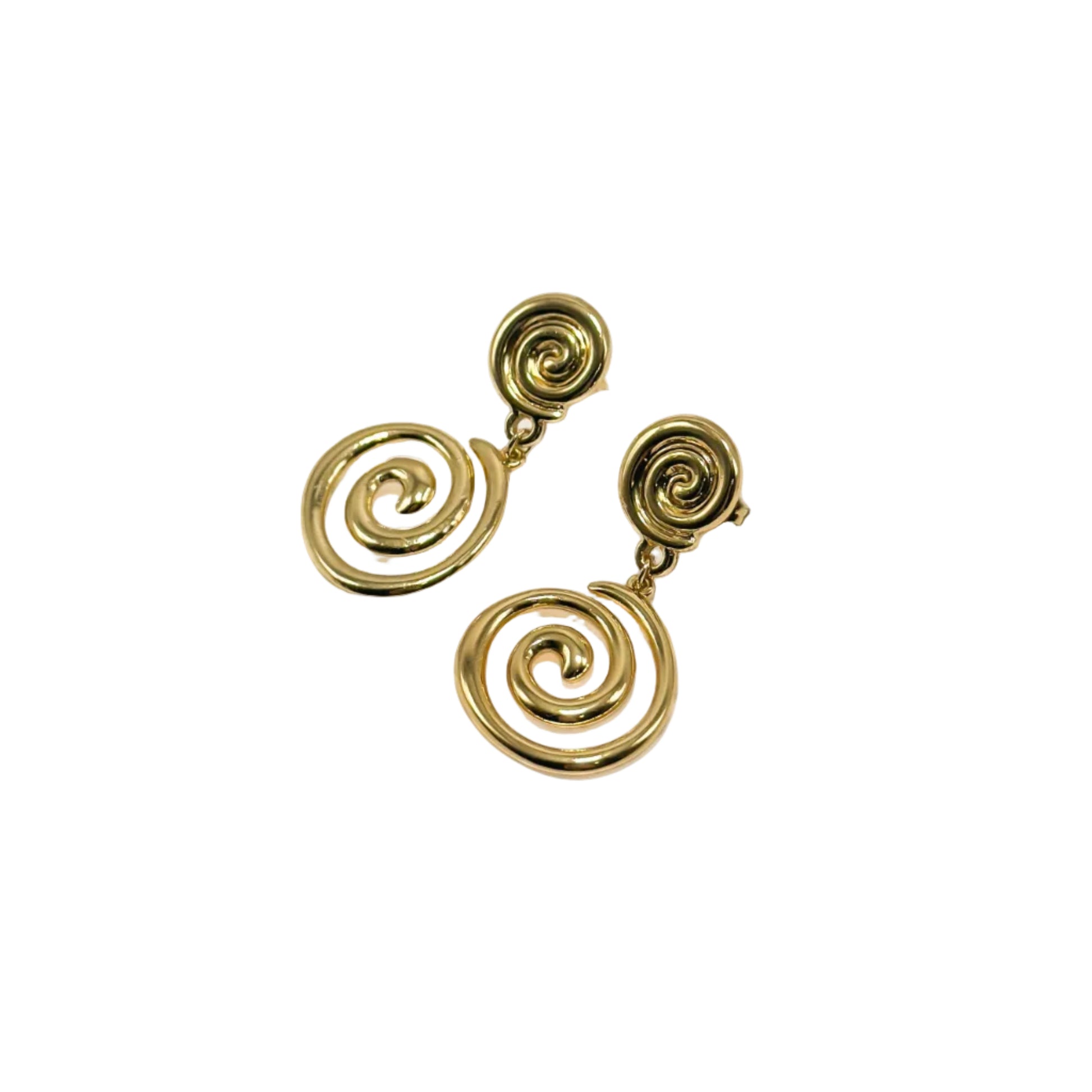 Snail-shaped drop earrings, inspired by seashells.